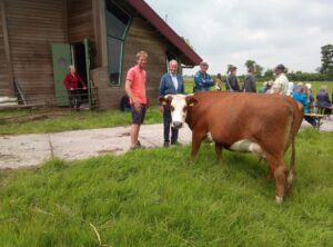 Namens de koeien maakt op de open dag één van de koeien, Evie 188, even contact met de nieuwe boer en zijn vader. Ze laat de mensen weten dat de koeien zich in goede handen weten bij Marinus en Rolinka.